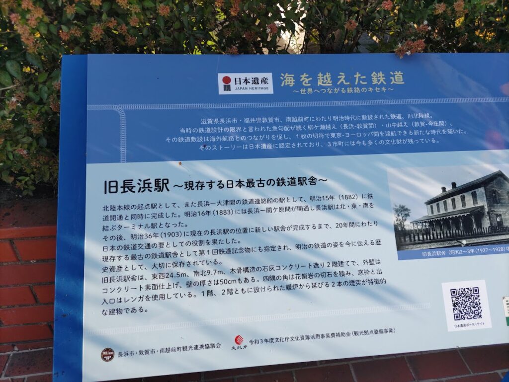 長浜駅のびわこ側には、現存する日本で一番古い駅舎を改造した建物が長浜鉄道スクエアという施設として、駅に併設されています。